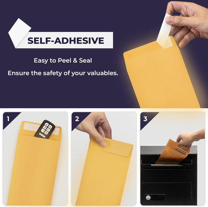 After-Hours Service Key Drop Envelopes for Car Dealerships - 4-1/8" × 9-1/2" 24# Kraft Envelopes with Top Opening - Secure, Durable, Tamper-Proof, Shrink-Wrapped