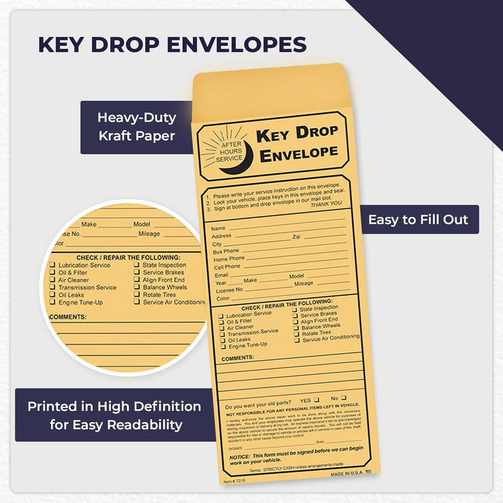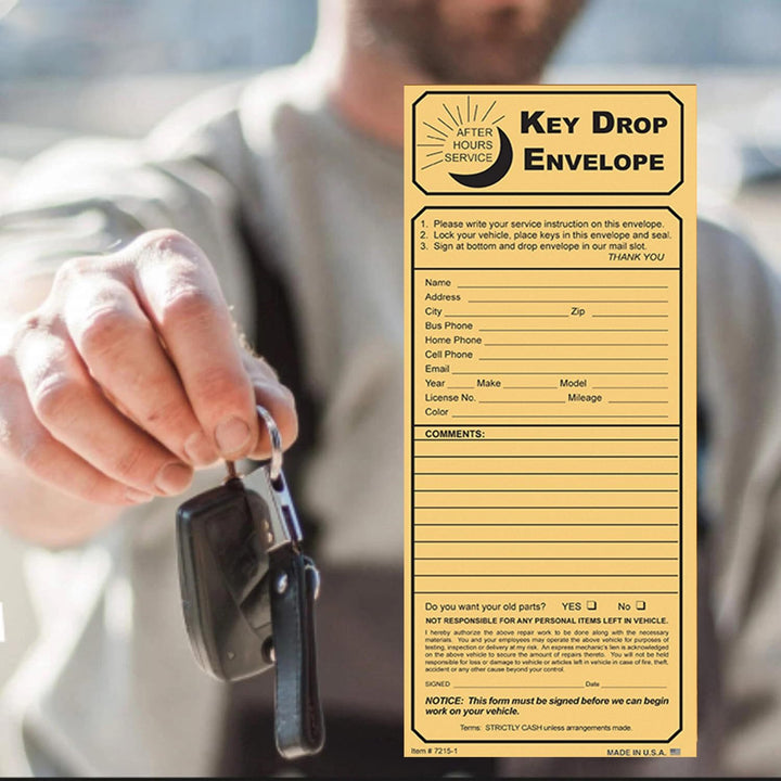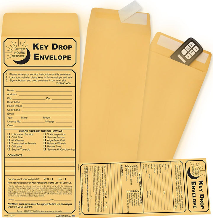 COMPACT & STANDARD SIZE: Measuring 4-1/8" × 9-1/2", these durable envelopes fit perfectly in standard key drop boxes and secure lock boxes used by dealerships, repair shops, and service providers.