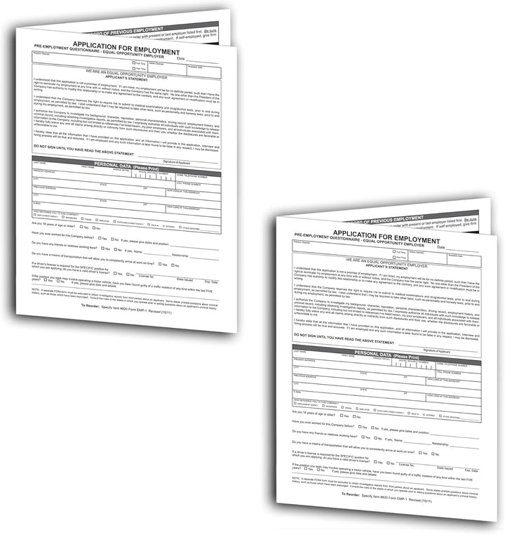 Convenient Folded Design: Folded 8.5" × 11" size allows for easy filing, storage, and organization of employment applications.