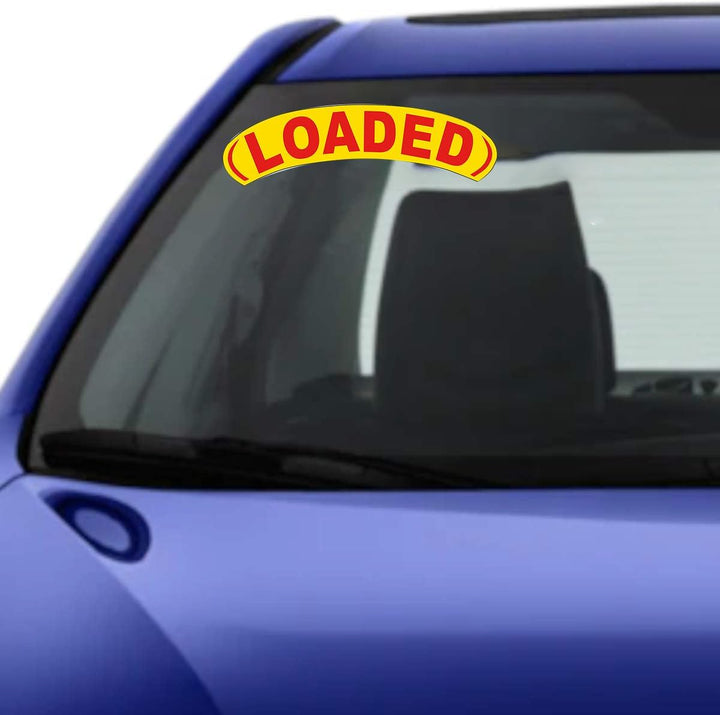 Arched Slogan Window Stickers - Red and Yellow Car Dealer Windshield Stickers - Durable, Weatherproof Vinyl with Easy On/Off Adhesive - Back Slit for Seamless Installation - 14" × 2-3/4"