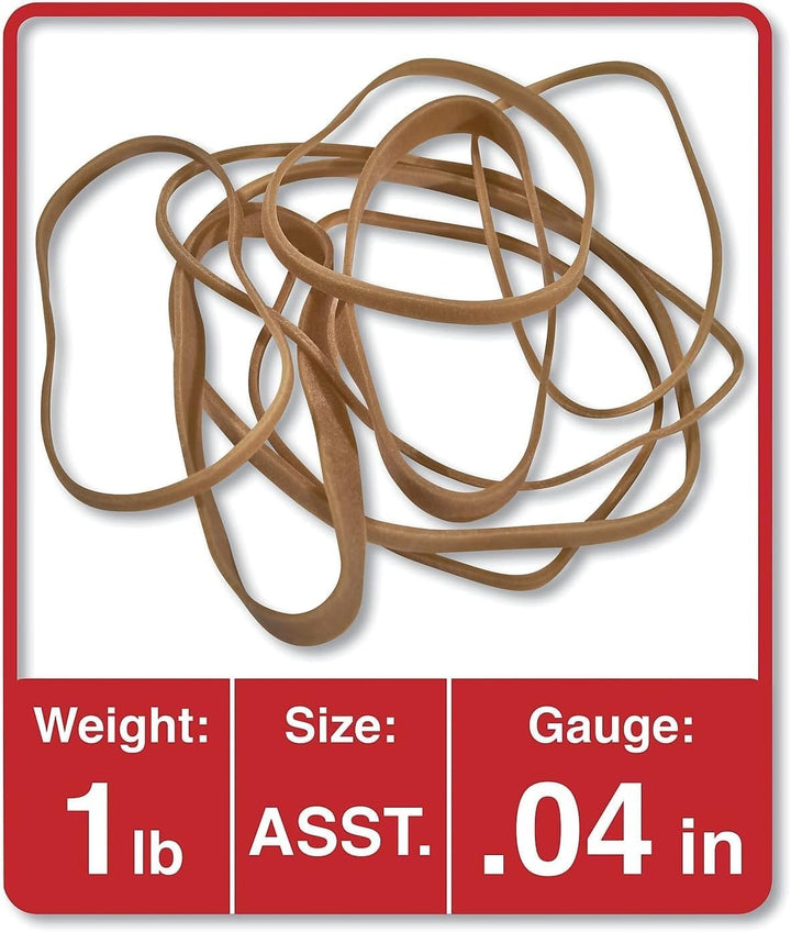 Assorted Sizes Beige Rubber Bands - Durable Flexible Rubber for Bundling, Document Securing, and Organizing - Multipurpose Bands for Office, Classroom, Home Use - 1 Pound Pack