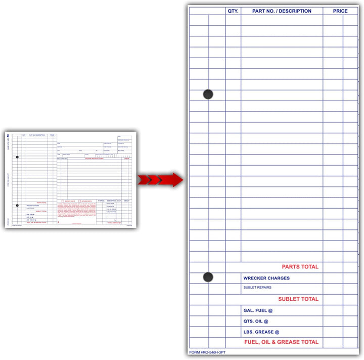 GENEROUS FORM SIZE & SNAP-OUT DESIGN: Large 7-5/8" × 8-1/2" forms with three-part snap-out feature provide ample space for technician notes, customer info, and invoicing, facilitating streamlined and efficient shop operations.