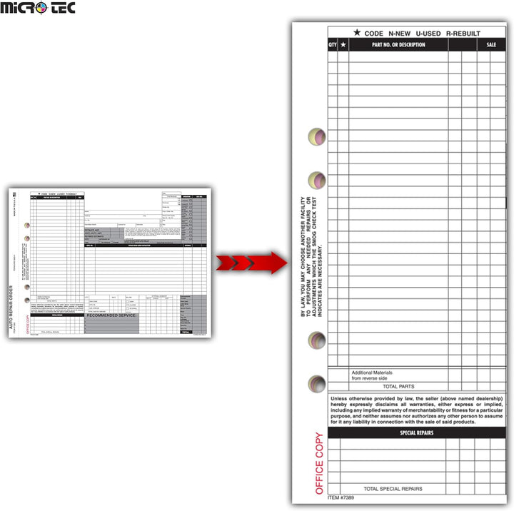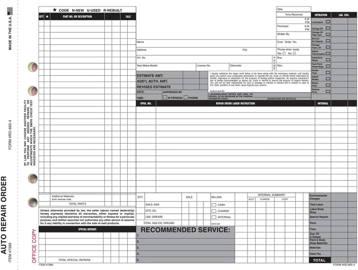 GENEROUS FORM SIZE & EASY SNAP-OUT DESIGN: Measuring 7-5/8" × 8-1/2", these 3-part snap-out forms provide ample space for detailed work orders, parts listing, labor breakdowns, and service notes, improving shop efficiency.