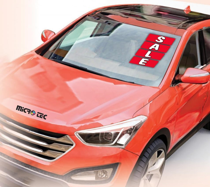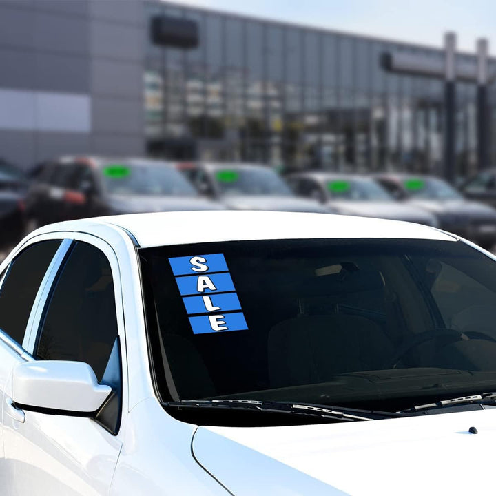 Introducing our Vibrant 4pcs SALE Windshield Banners, a must-have solution for businesses looking to maximize visibility and drive sales. Measuring a generous 50" × 20" each, they offer ample space to display your message prominently, guaranteeing that your offers are noticed from afar. Installing and removing these banners is a breeze, thanks to the included bungee cords. Effortlessly attach them to side mirrors for quick setup, ideal for temporary offers or test drives. Crafted from heavy-duty reinforced vinyl, these banners are built to withstand the elements, ensuring durability and long-lasting use. With four banners included in the kit, you have a cost-effective solution to enhance your marketing efforts and drive foot traffic to your business. Whether you're offering a seasonal sale, special event, or showcasing new arrivals, our Windshield Banners are the perfect blend of visibility, convenience, and durability.