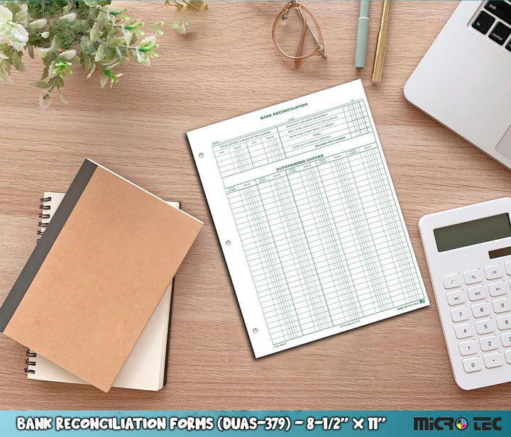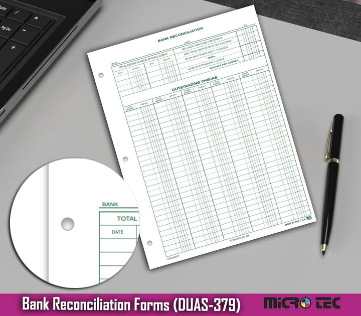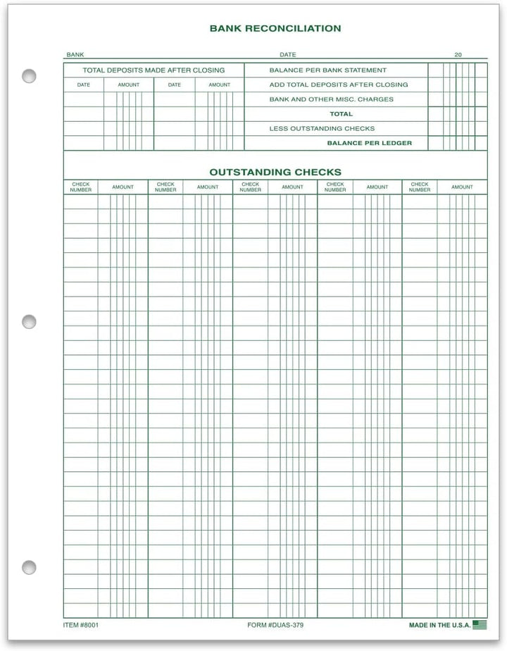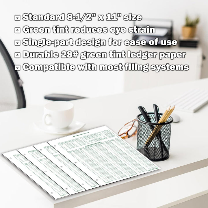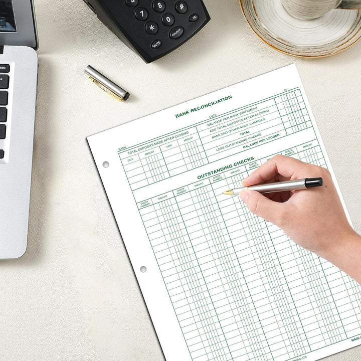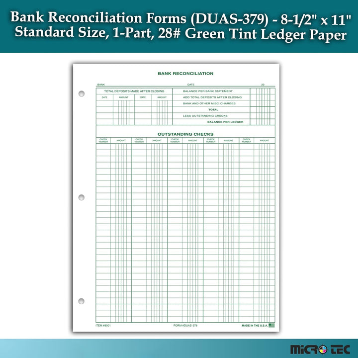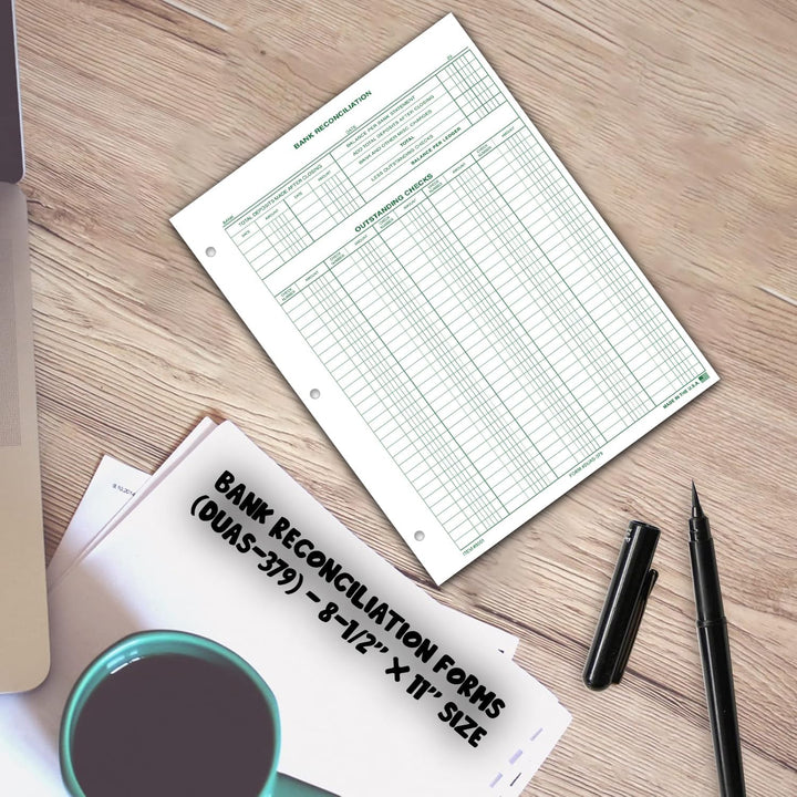Bank Reconciliation Forms (DUAS-379) - 8-1/2" x 11" Standard Size, 1-Part, 28# Green Tint Ledger Paper - Simplify Bank Statement Balancing with Durable and Easy-to-Read Financial Forms