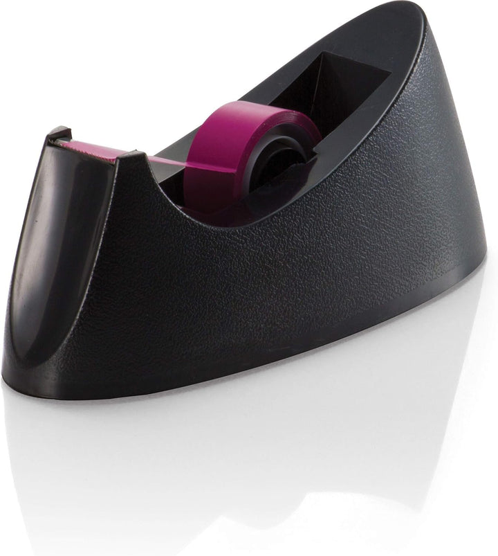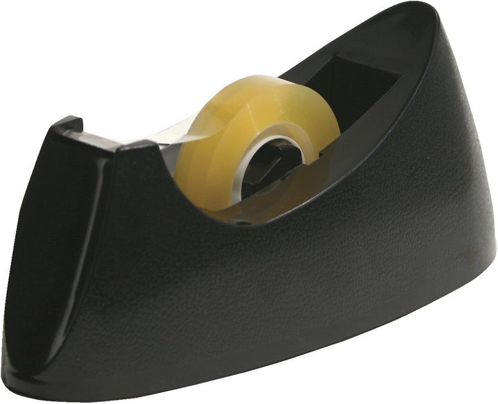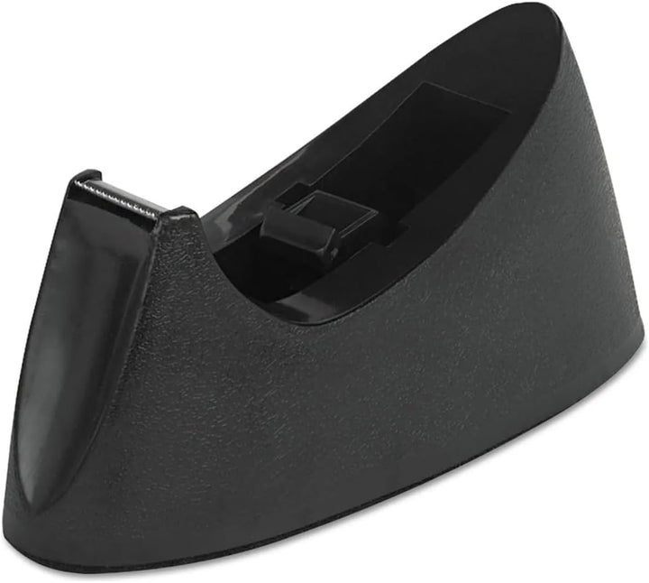 Black Desktop Tape Dispenser - Weighted Non-Skid Base for Stability - Fits 3/4" Tape Width, 1" Core Size - Heavy-Duty Plastic Build - Office & Home Organization