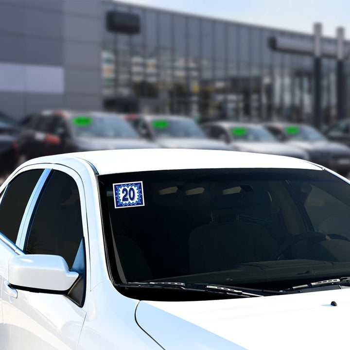 Enhance your dealership's visual appeal with our Blast Year Window Stickers, a perfect blend of eye-catching design and practical functionality. The vibrant colors of these stickers are guaranteed to capture your customers' attention, adding a stylish touch to their vehicles. Crafted from durable weatherproof vinyl, these stickers are built to withstand the elements, ensuring they stay vibrant and attractive for an extended period. The user-friendly design includes a convenient slit on the back, making the application process a breeze – no need to struggle with complicated installations. Our easy on-and-off adhesive ensures a smooth experience, allowing for hassle-free application and removal without leaving any sticky residue behind. Each pack offers a generous supply of Oval Year Window Stickers, measuring 8-1/2" × 7", providing an efficient and ample supply for your dealership's needs.