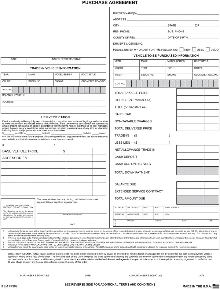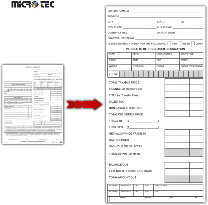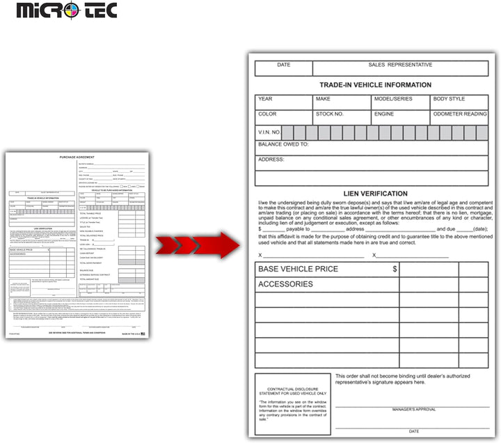 Car Dealership Purchase Agreements for Smooth Vehicle Sales Transactions – 8-1/2" × 11" 2-Part Edge-Glued Carbonless Forms – White & Canary Sales Contract Copies