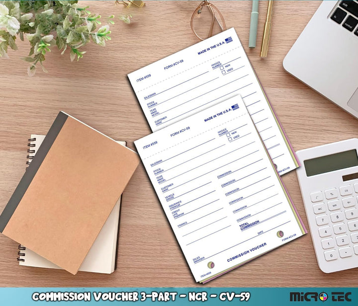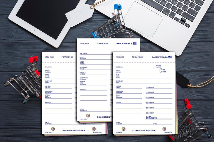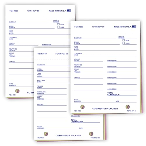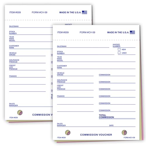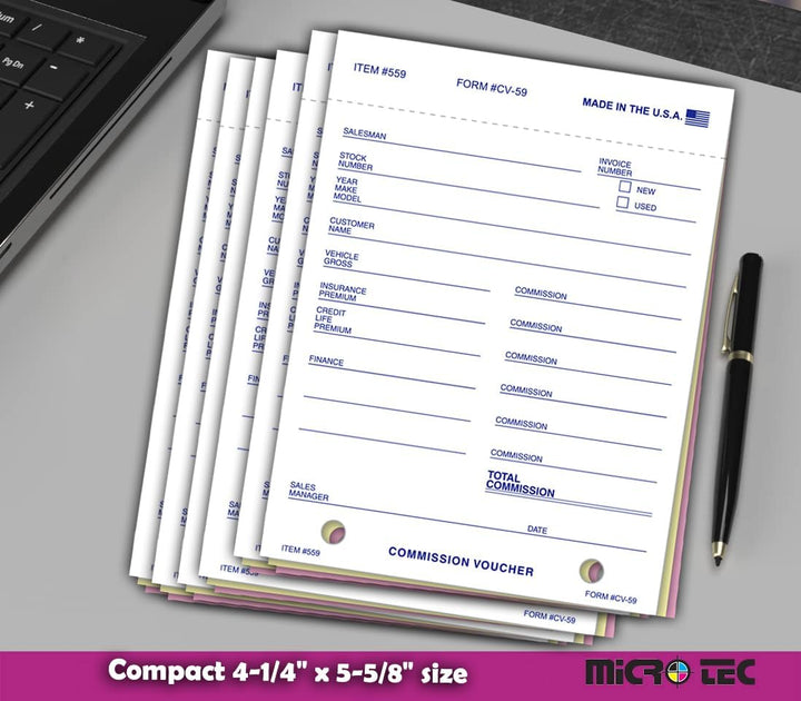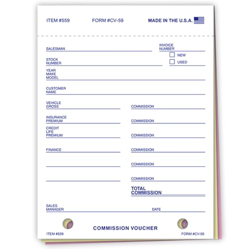 💰 COMMISSION TRACKING: The automotive sales commission voucher (Form CV-59) provides an accurate method to total dealership commissions on every deal for reliable payroll records.