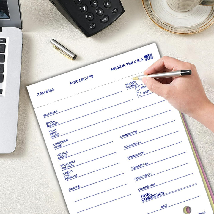 🗂 DURABLE & ORGANIZED: Pre-punched with 2 holes for quick filing, these dealership commission forms keep documents orderly in binders or service files.