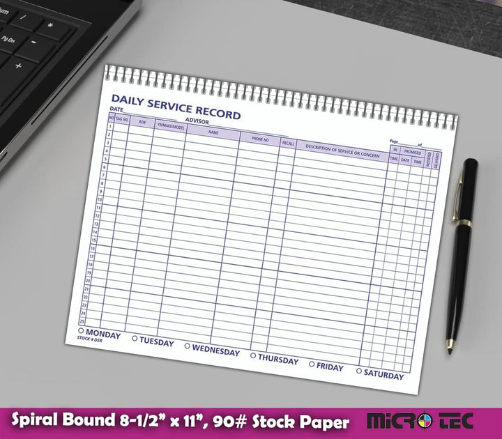 Daily Car Service Record Book – 8.5" x 11" Spiral Bound Auto Service Log – Blue Ink Durable 90# Paper – Automotive Service & Repair Tracking – Dealership Workshop Record - 100 Pages/Book