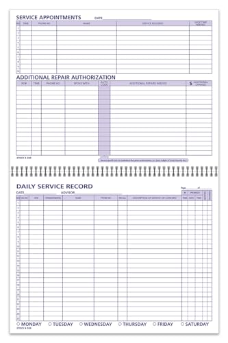 Keep your automotive repair appointments organized and efficient with our Daily Appointment Record Book. Each book measures 8-1/2" x 11" and made from durable 90# stock paper, providing ample space to document repair appointments and authorizations for additional work. The spiral-bound design allows for easy flipping of pages, while the compact size ensures convenient placement on desks or countertops. Printed in bold black ink, each page offers clear and legible details, helping to minimize errors and misunderstandings. Whether you're a mechanic, technician, or service advisor, this appointment record book is an essential tool for maintaining organization and enhancing customer service in your automotive shop.