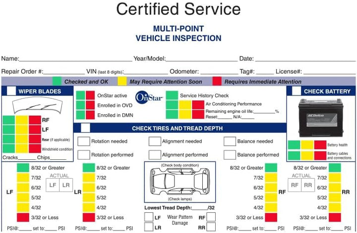 🚗 VIBRANT FULL COLOR PRINTING: All sections of the mechanic inspection forms feature full-color printing for clarity and professional presentation, helping technicians and service writers quickly distinguish and interpret every element of the inspection process.