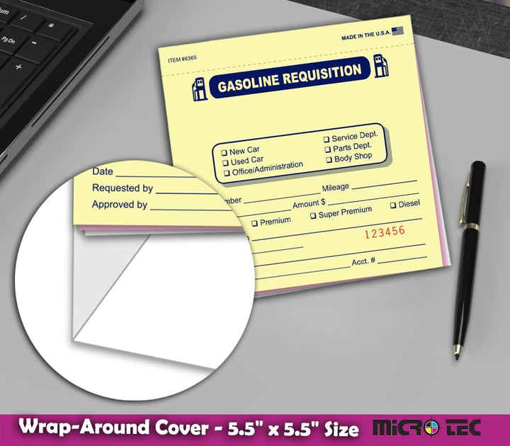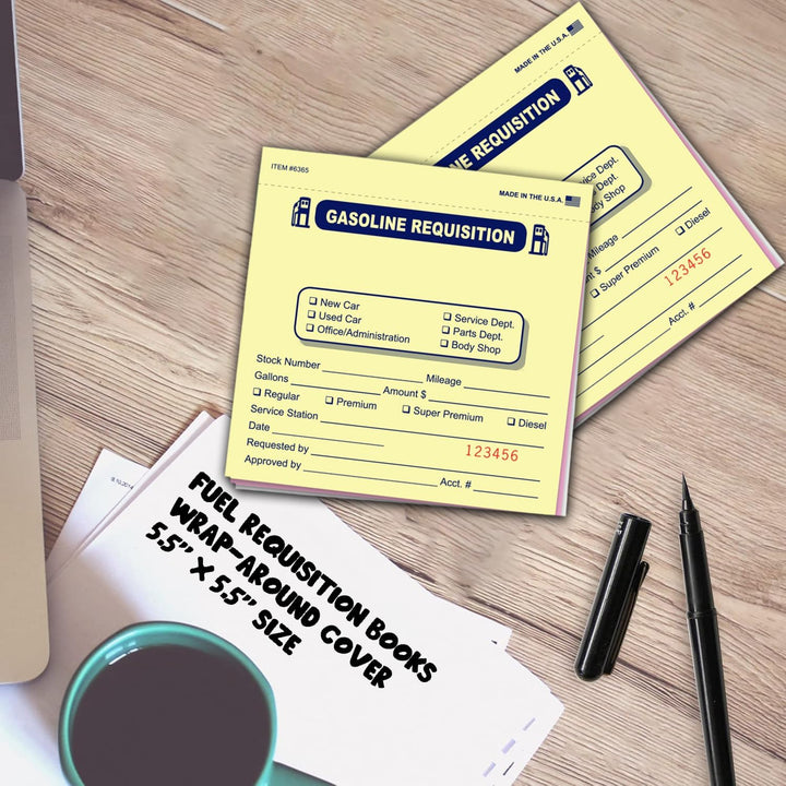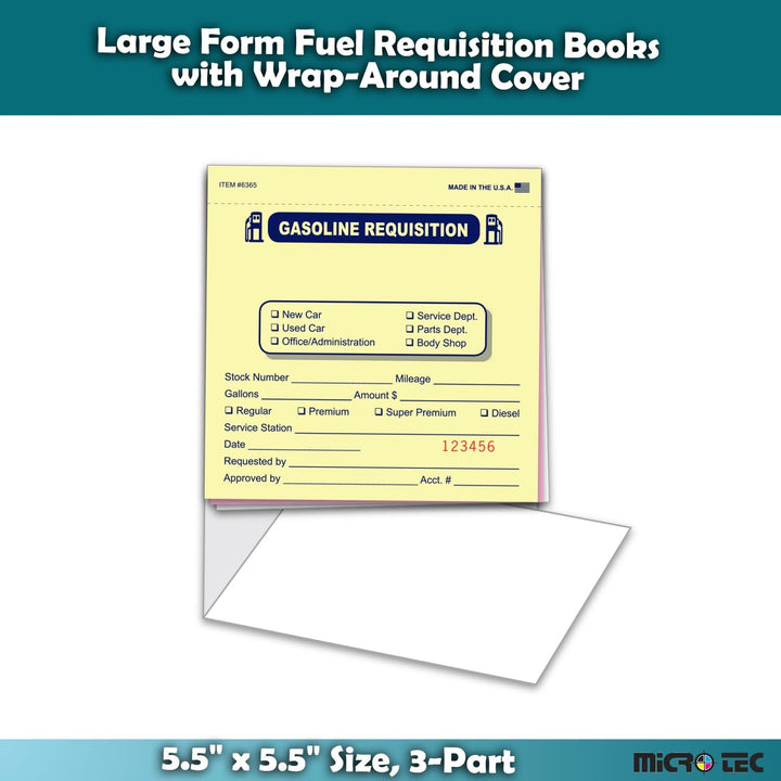 Heavy-Duty Fuel Requisition Books with Wrap-Around Cover - 5.5" x 5.5" Size, 3-Part (Yellow, Pink, White) Carbonless Forms (25/Book)