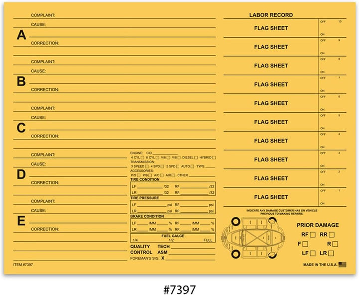 Maximize the efficiency and precision of your repair documentation processes with our Heavy Duty Repair Orders. Tailored for versatility across various repair industries, from automotive to maintenance services, these orders offer a comprehensive solution for recording repair tasks with meticulous detail. Crafted from durable 90# index printed stock, each 11" × 8-1/2" sheet provides a sturdy platform to document repair records reliably and withstand the rigors of daily use. Designed for seamless integration with a multitude of work order systems, our repair orders ensure compatibility and flexibility. With five distinct options available, these orders facilitate detailed and precise communication between technicians and clients, enhancing service quality and customer satisfaction. Whether you're managing a bustling service center or a specialized repair shop, our heavy duty repair orders are the ultimate option to optimize efficiency, accuracy, and professionalism in your repair documentation practices.
