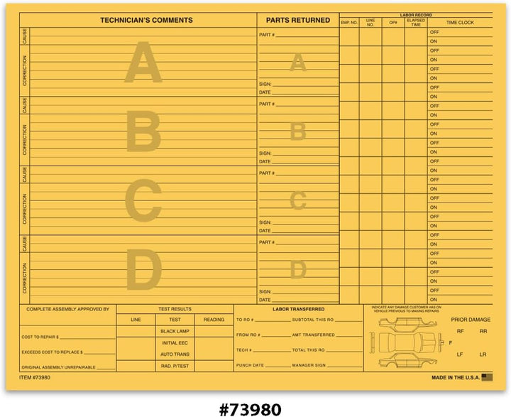 VERSATILE REPAIR DOCUMENTATION: Heavy-duty repair orders designed for automotive, maintenance, and service industries, providing a comprehensive and durable platform for detailed repair records.