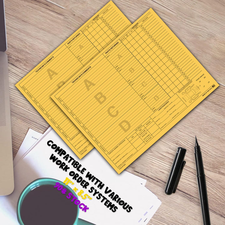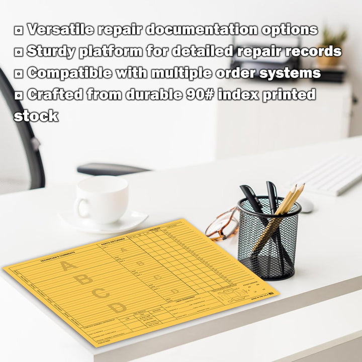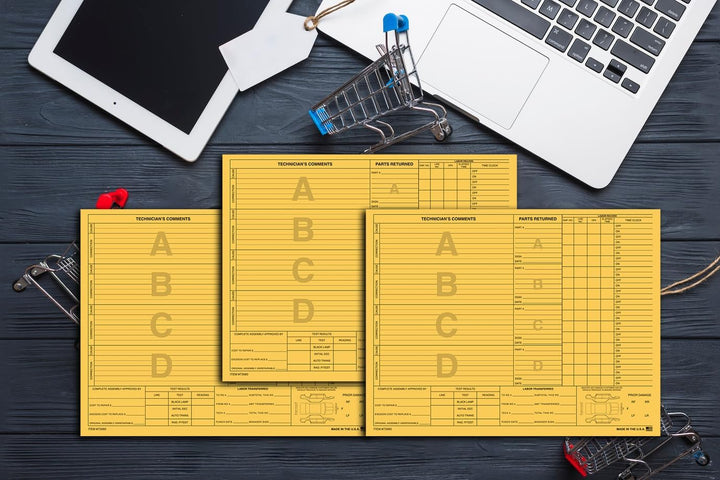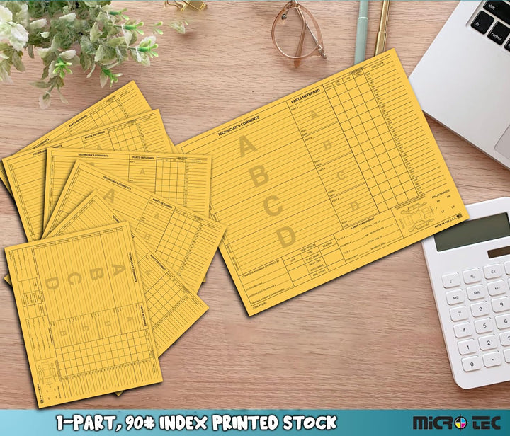 PREMIUM 90# INDEX STOCK FOR DURABILITY: Made from thick, high-quality 90# printed index stock, these forms withstand daily handling and ensure long-lasting repair records suitable for busy car dealership service departments.