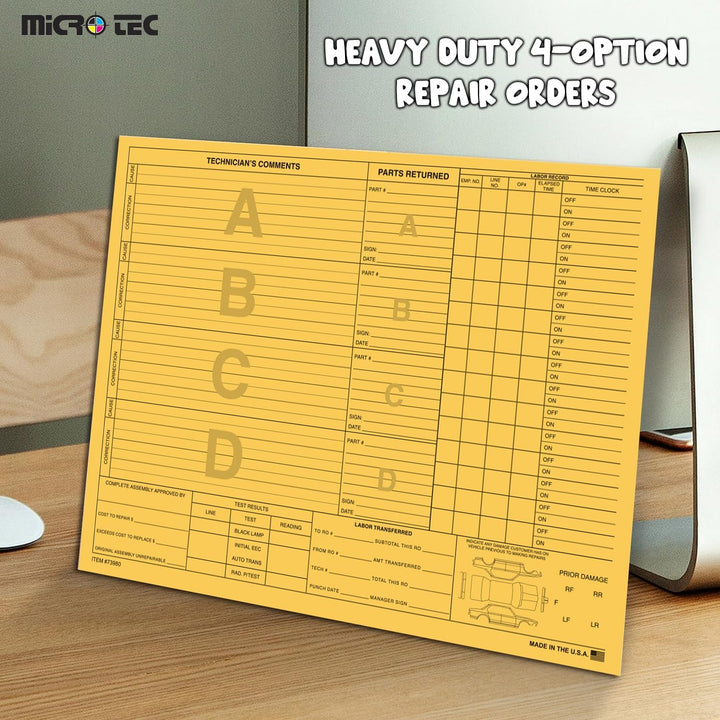 VERSATILE AUTOMOTIVE REPAIR DOCUMENTATION: Heavy-duty repair orders designed for comprehensive use in automotive repair shops, service centers, and maintenance industries, offering durable and professional documentation for all repair tasks.