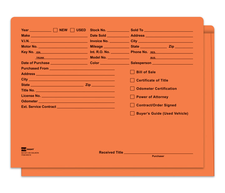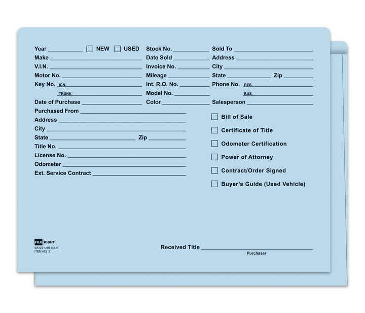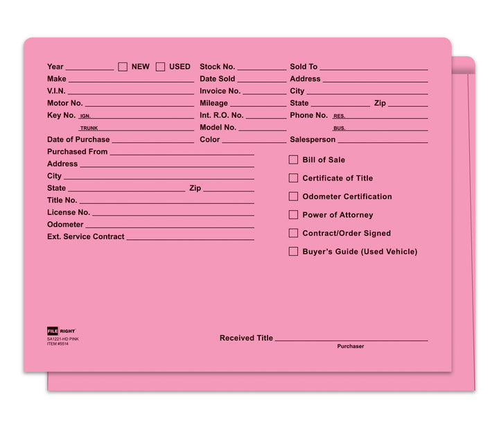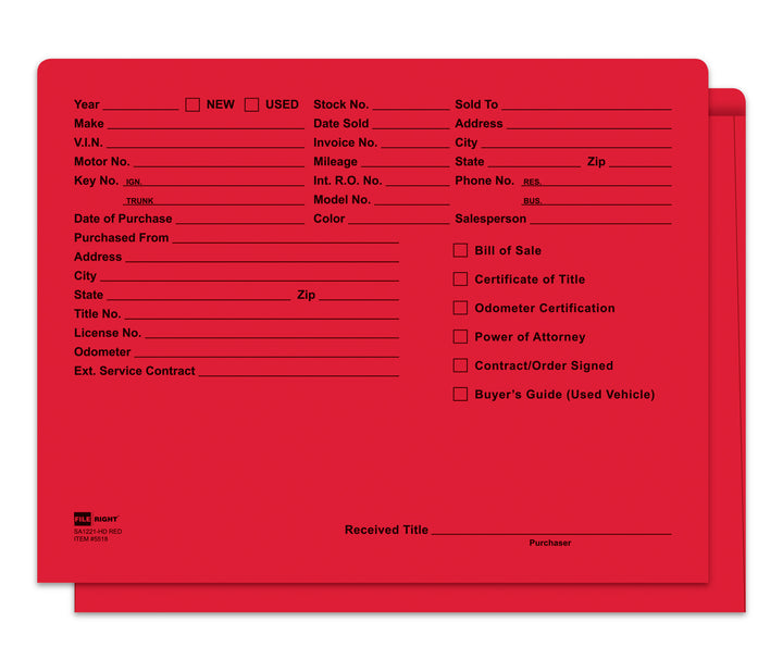 Measuring 12" × 9-3/8", including the 1/2" extension, these deal jackets provide ample space for systematically documenting and storing critical car sale information. The bulk packaging ensures a substantial supply for seamless dealership operations and efficient paperwork management. Elevate your dealership's efficiency and professionalism with these heavy-duty, versatile deal jackets designed to meet your specific organizational needs.