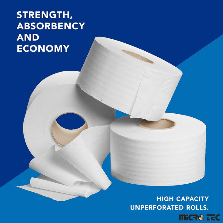 HIGH-CAPACITY JUMBO ROLL TOILET PAPER: Each roll contains 1000 sheets of soft, durable 2-ply tissue, designed for extended use in busy commercial restrooms, reducing maintenance time and restocking frequency.