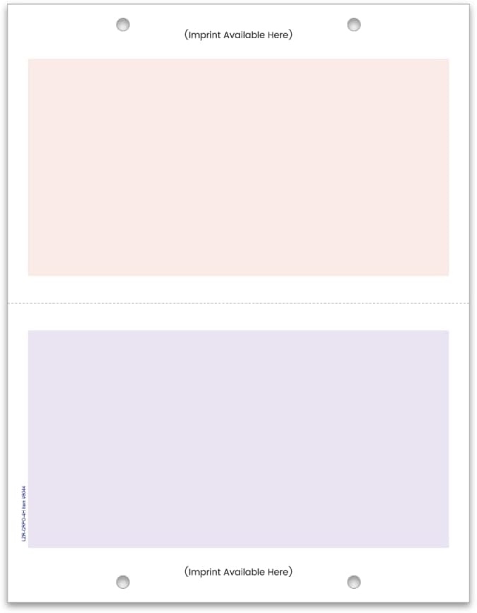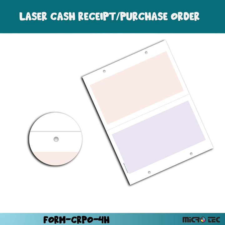 Laser Cash Receipt & Purchase Order Form - 8.5" × 11" 1-Part White 20# Laser Paper with Center Perforation at 5.5" - Red & Blue Screen Printing - Plain Forms with Optional Punch Holes