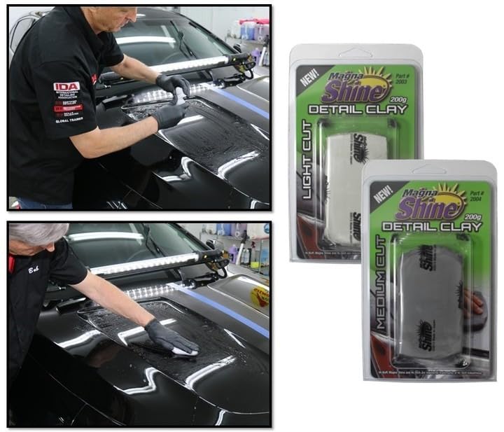 Magna Shine Clay Bar for Automotive Paint Restoration – Removes Paint Over-Spray, Industrial Fallout & Contaminants – Light & Medium Cut Options – 200g Professional Detailers’ Clay Bar