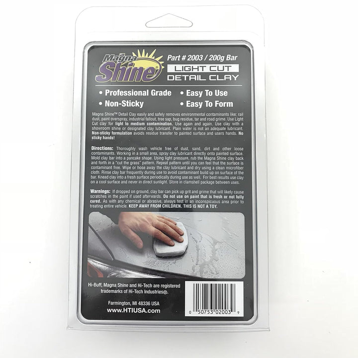 Elevate your car detailing game with the Magna Shine Clay Bar, the ultimate solution for restoring your vehicle's paintwork to its former glory. Designed to tackle even the toughest contaminants, this clay bar is your go-to tool for removing stubborn paint over-spray and industrial fallout, leaving behind a smooth, flawless finish that's sure to turn heads. Choose between our Light Cut Clay or Medium Cut Clay options to match your specific detailing requirements. Whether you're dealing with light surface contaminants or more stubborn buildup, our clay bars provide precise, tailored performance to ensure optimal results every time. With the flexibility to address a variety of contamination levels, you can trust the Magna Shine Clay Bar to deliver professional-quality results with ease. Crafted with automotive enthusiasts and professionals in mind, our clay bars are formulated to be safe and effective on all paint finishes, including clear coats. Simply glide the clay bar over the surface of your car using a lubricant, and watch as it gently lifts away contaminants without causing damage. Whether you're a detailing enthusiast or a professional detailer, the Magna Shine Clay Bar delivers exceptional performance.