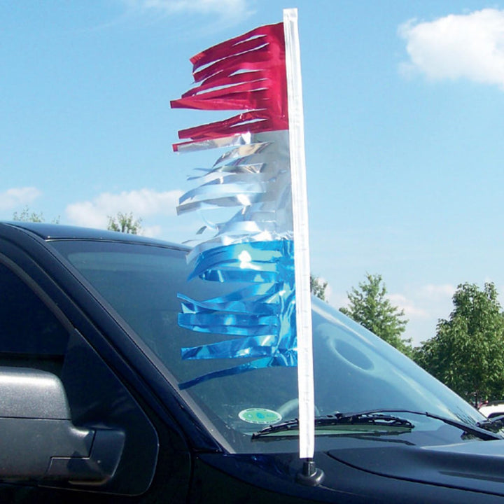 PATRIOTIC DESIGN: Bold red, silver, and blue metallic antenna flags perfect for national holidays, parades, car shows, and Fourth of July celebrations, adding eye-catching patriotic flair to any vehicle.
