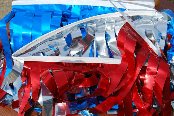 Metallic Antenna Flags for Car Antennas - Fringe Strips & Triangular Shape - Red, Silver & Blue Patriotic Vehicle Flags with Easy-Slide 32" Sleeve - Durable Outdoor Car Antenna Decorations