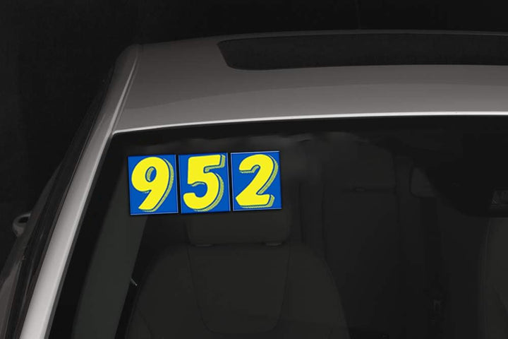 Elevate the presentation of your vehicle inventory with our meticulously designed Number Window Stickers, meticulously tailored with a striking blue and yellow theme. Crafted from premium-grade weatherproof vinyl, these stickers are built to withstand the elements while retaining vibrant colors, ensuring long-lasting visibility. The inclusion of an easy on/off adhesive simplifies application and removal, providing flexibility in updating your displays. Additionally, the back slit feature ensures seamless installation, allowing for precise alignment on windows or other surfaces. With bulk packs, you'll have an ample supply to adorn your showroom vehicles, making them stand out and capture the attention of potential buyers.