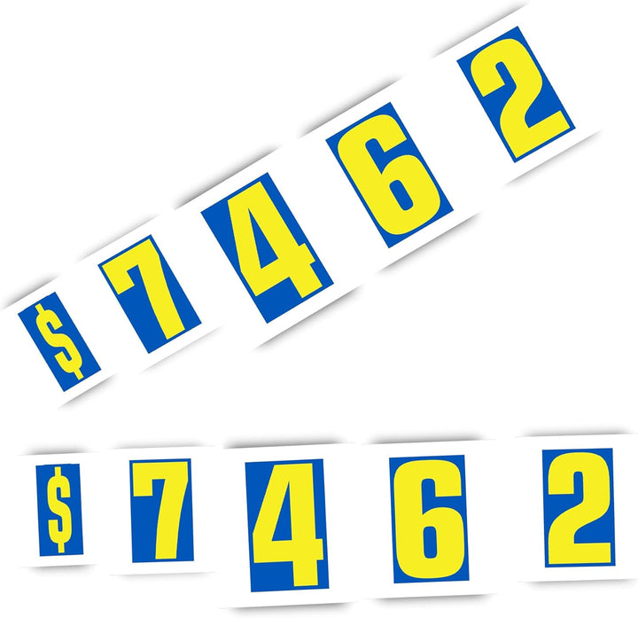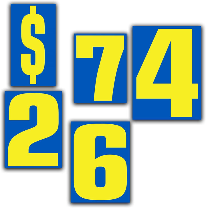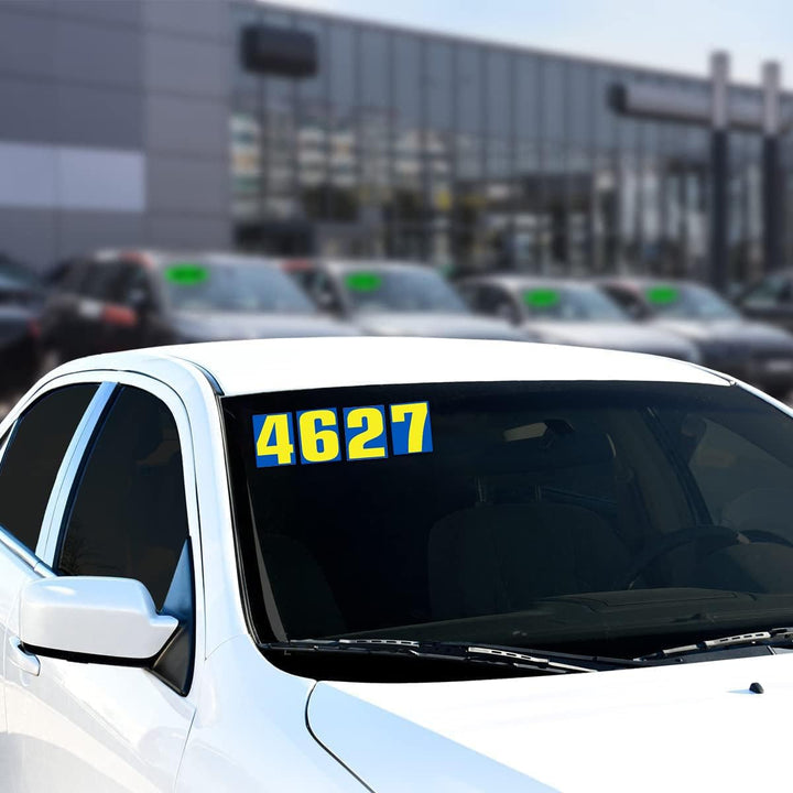 🚗 BULK DEALERSHIP PACK – Includes multiple 9-1/2" blue and yellow number decals, perfect for auto sales window labeling, inventory management, and professional car lot prep.