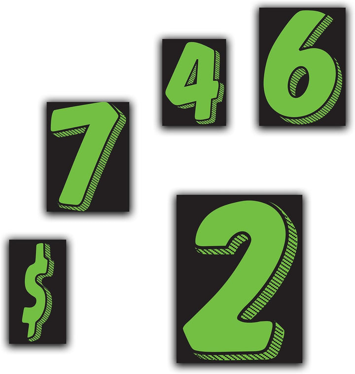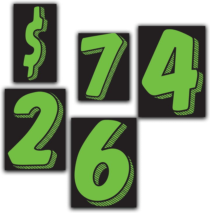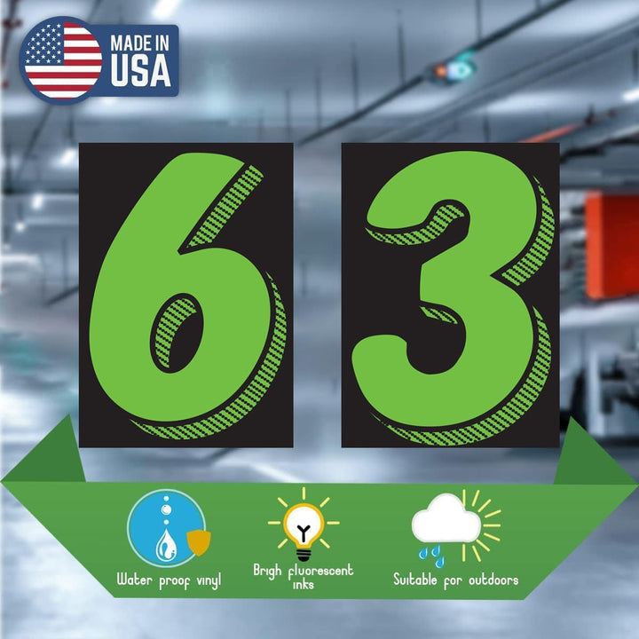 Number Window Stickers - Fluorescent Green & Black Car Dealer Number Stickers - Durable, Weatherproof Vinyl with Easy On/Off Adhesive - Back Slit for Seamless Installation - 7-1/2"