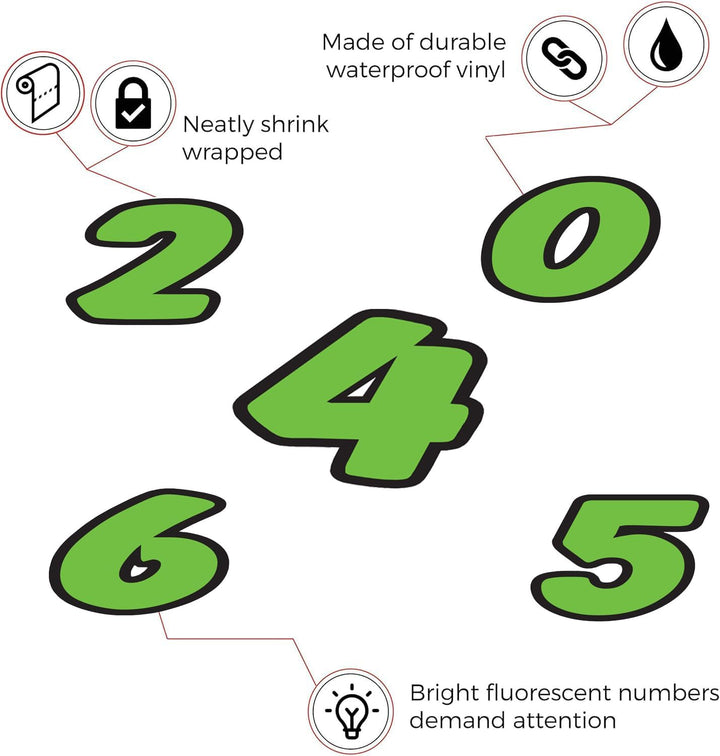 Number Window Stickers - Green & Black Die Cut Number Stickers - Durable, Weatherproof Vinyl with Easy On/Off Adhesive - Back Slit for Seamless Installation - 6-1/4"
