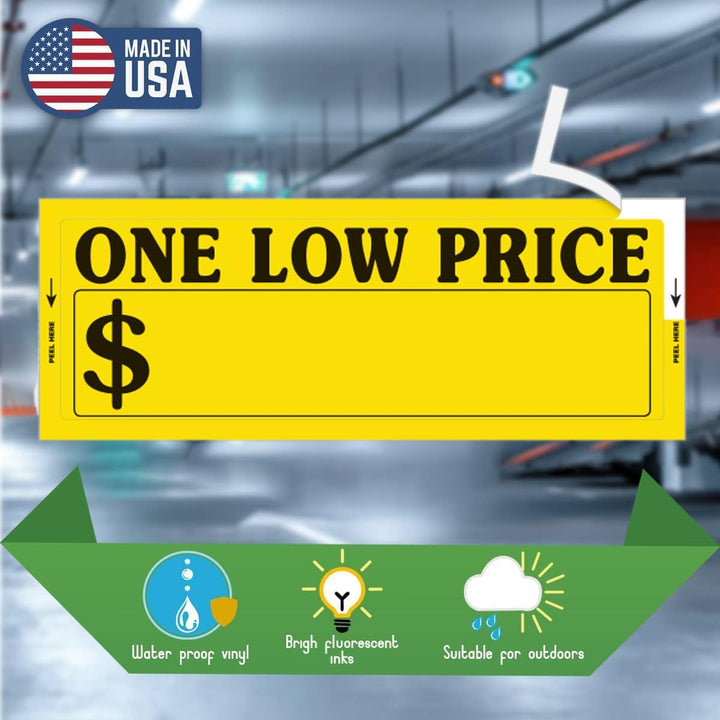 One Low Price Window Stickers for Dealerships and Retail - Heavy Yellow Card Stock - Peel-Off Edge for Easy Application on Vehicle Windows - Large 12" × 4-1/2" Size