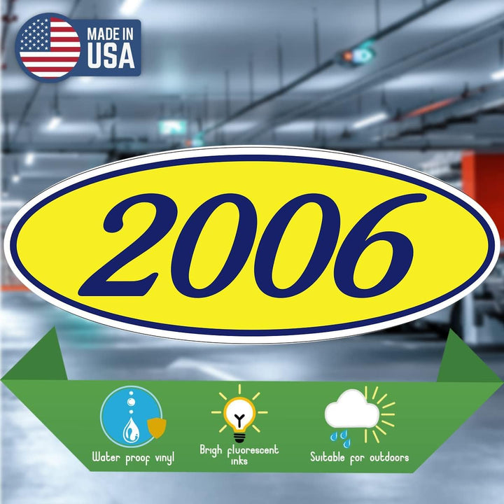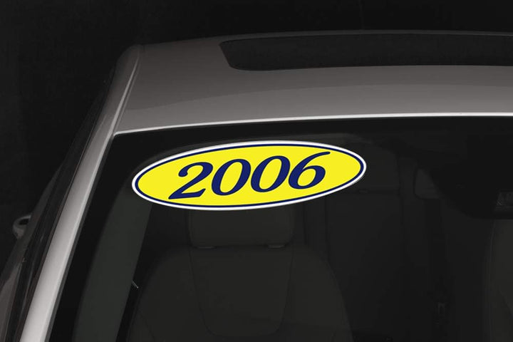 Oval Year Window Stickers - Durable, Weatherproof Vinyl with Easy On/Off Adhesive - Back Slit for Seamless Installation - 14" × 5-1/2" Stickers