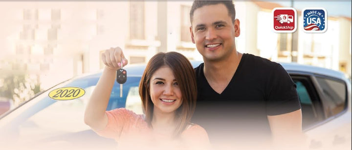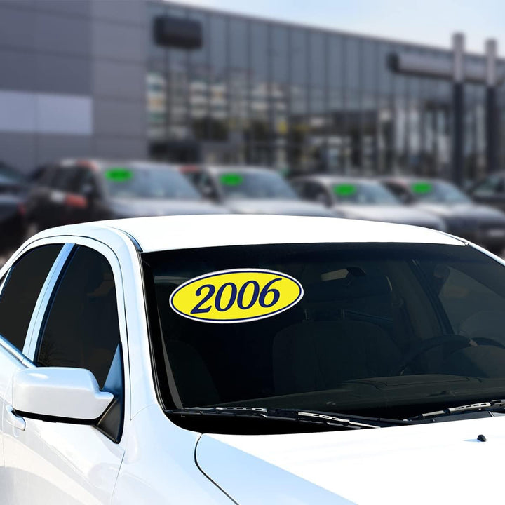 Enhance your dealership's visual appeal with our Oval Year Window Stickers, a perfect blend of eye-catching design and practical functionality. The vibrant colors of these stickers are guaranteed to capture your customers' attention, adding a stylish touch to their vehicles. Crafted from durable weatherproof vinyl, these stickers are built to withstand the elements, ensuring they stay vibrant and attractive for an extended period. The user-friendly design includes a convenient slit on the back, making the application process a breeze – no need to struggle with complicated installations. Our easy on-and-off adhesive ensures a smooth experience, allowing for hassle-free application and removal without leaving any sticky residue behind. Each pack offers a generous supply of Oval Year Window Stickers, measuring 14" × 5-1/2", providing an efficient and ample supply for your dealership's needs.
