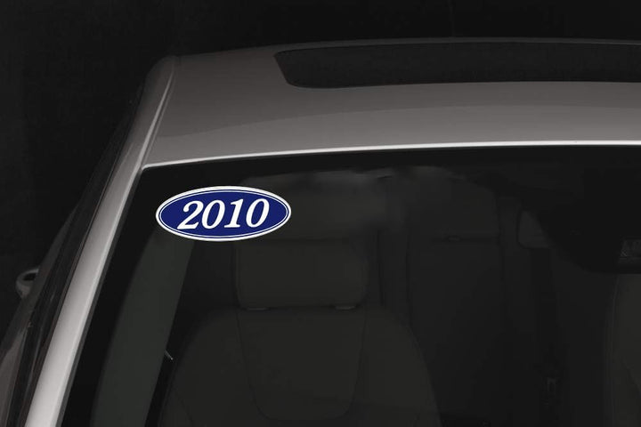 Oval Year Window Stickers – White on Navy Blue Vinyl Decals – Durable Weatherproof Car Stickers with Easy On/Off Adhesive – Back Slit for Smooth Installation – 14" × 5.5"