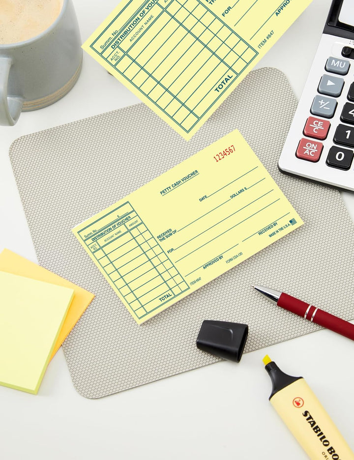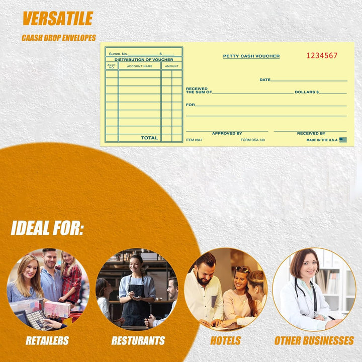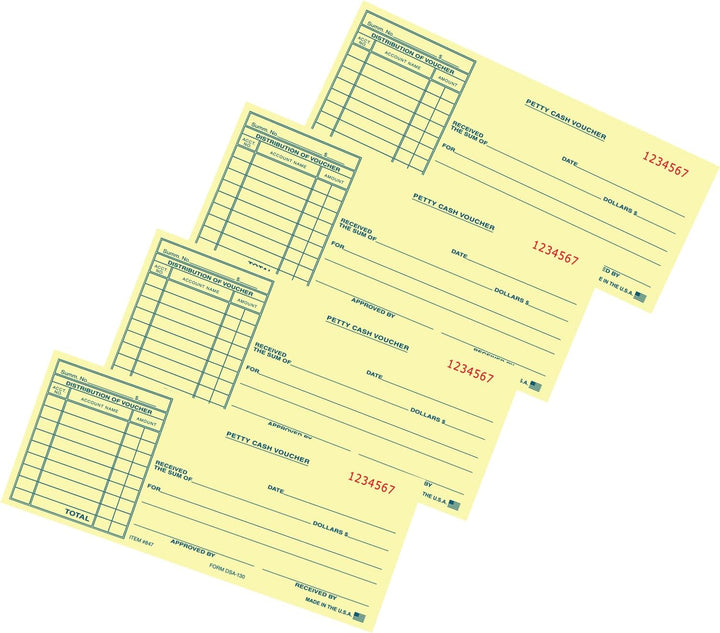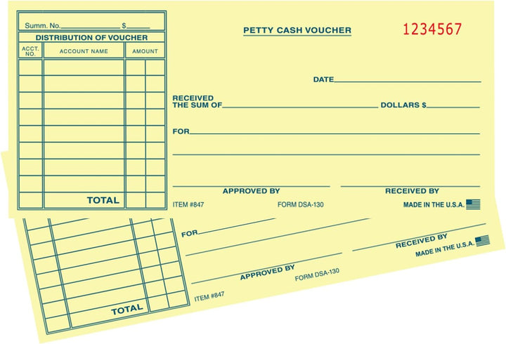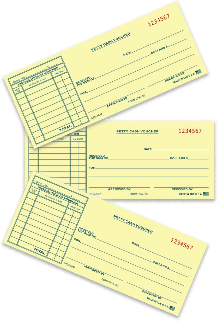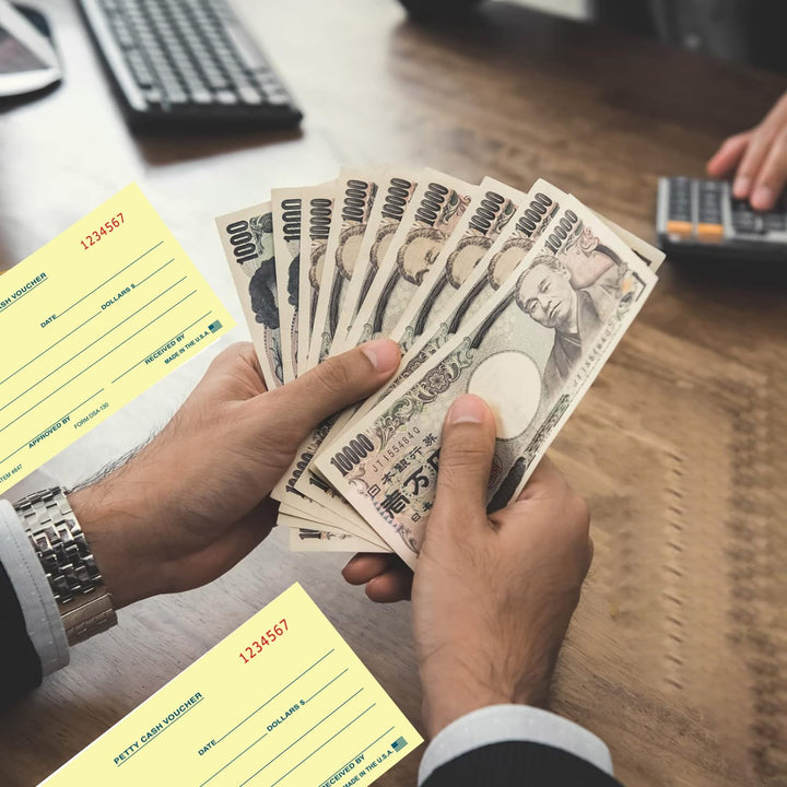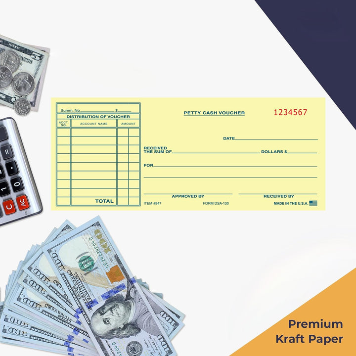 Petty Cash Voucher for Tracking Payments Money Management Receipt - 8-1/2" × 3-1/2" 1-part Canary Paper, Ledger for Petty Cash Record Keeping of Business Accounts