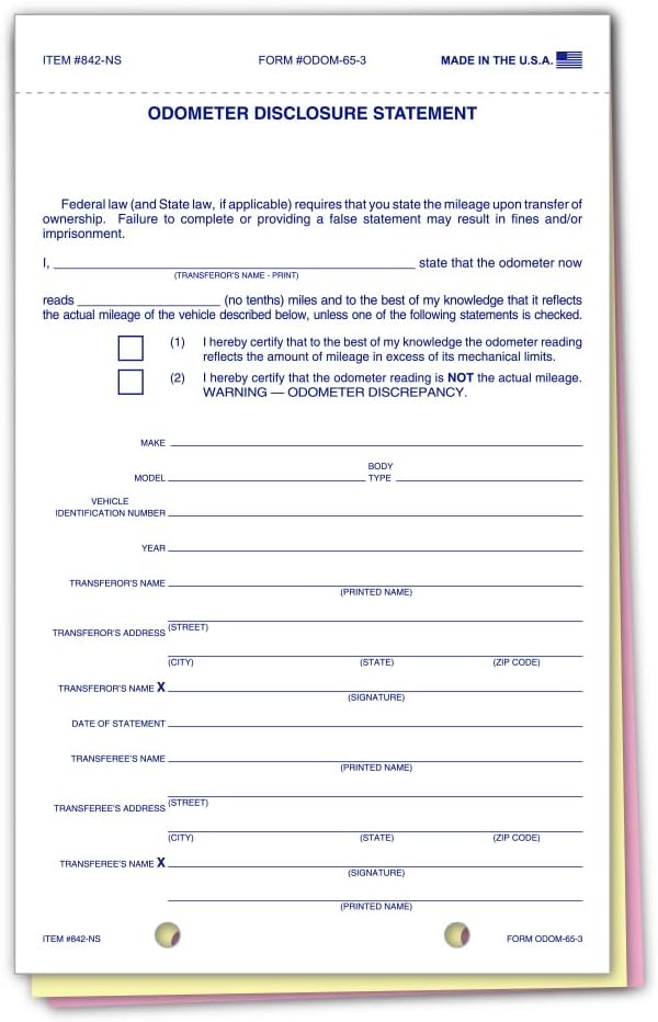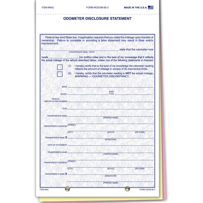 🟦 BLUE SCREEN OR NO-SCREEN DESIGN: These odometer disclosure statements feature a clean blue screen or screen-free layout, offering a professional backdrop for mileage disclosures and DMV compliance.
