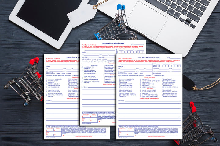 Empower your customers and streamline your service process with our Pre-Service Check-In Sheets (Form RO-100). Designed to prioritize customer feedback and enhance communication between clients and service advisors, these sheets offer a comprehensive solution for your pre-service check-in needs. Measuring a generous 8-1/2" × 11", each sheet provides ample space for customers to articulate their service concerns in their own words. This allows for clear and detailed communication, ensuring that service advisors have a thorough understanding of customer needs before proceeding with service. Crafted from professional-grade 20# white laser paper, these sheets exude quality and reliability, maintaining a polished image for your business. The padded format ensures effortless tear-off, facilitating convenient distribution and usage by both customers and service personnel. With 50 sheets per pad and 2 pads per pack, you'll have an abundant supply to support your ongoing service check-in requirements. Whether you're a dealership, auto repair shop, or service center, our Pre-Service Check-In Sheets are the ideal tool for enhancing customer satisfaction and service efficiency.