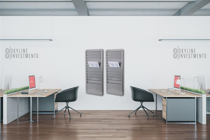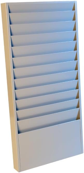 Premium 12-Pocket Steel Repair Order Rack - 24 Gauge Gray Steel Racks for Automotive Repair Orders - Large 28"H × 13"W × 2"D Rack with 12-1/2"W × 5"D Pocket