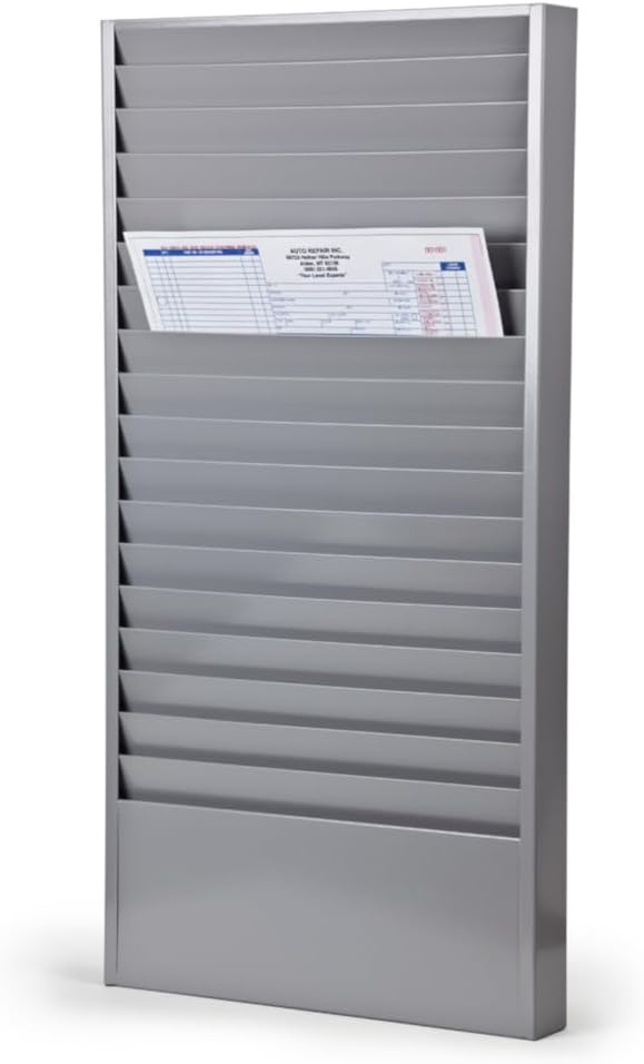 Premium 18-Pocket Steel Repair Order Rack - 24 Gauge Gray Steel Racks for Automotive Repair Orders - Large 28"H × 13"W × 2"D Rack with 12-1/2"W × 5"D Pocket
