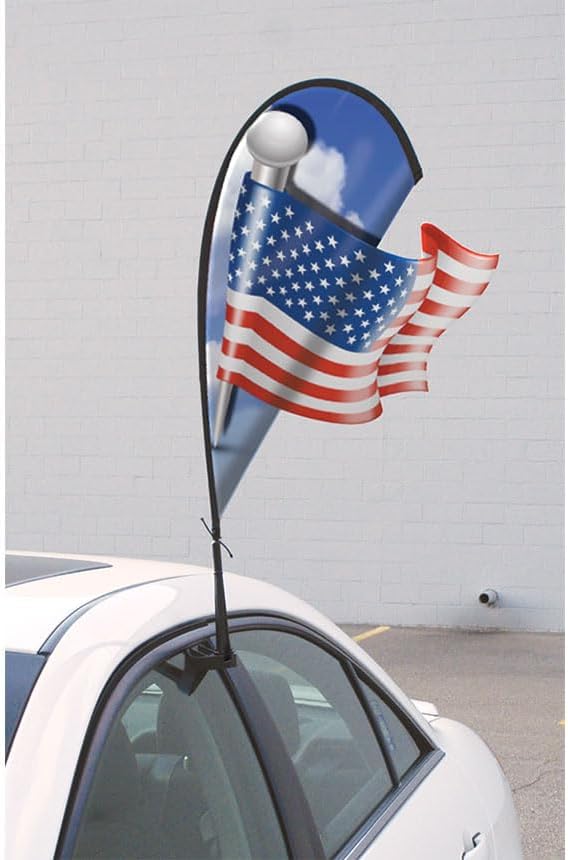 Premium 3D Clip-On Paddle Flags for Vehicle Windows - 2-1/2' Tall Durable Fiberglass Pole - Wind-Resistant Car Window Flags, Double-Sided Printing, Outdoor Vehicle Advertising