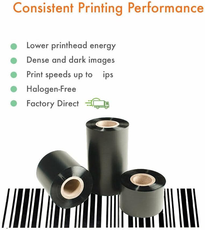 • Wax Resin Thermal Transfer Ribbon: Specially formulated for high-resolution, durable prints with excellent resistance to smudging and abrasion, ideal for barcode labels, shipping tags, and product labeling.