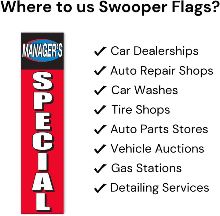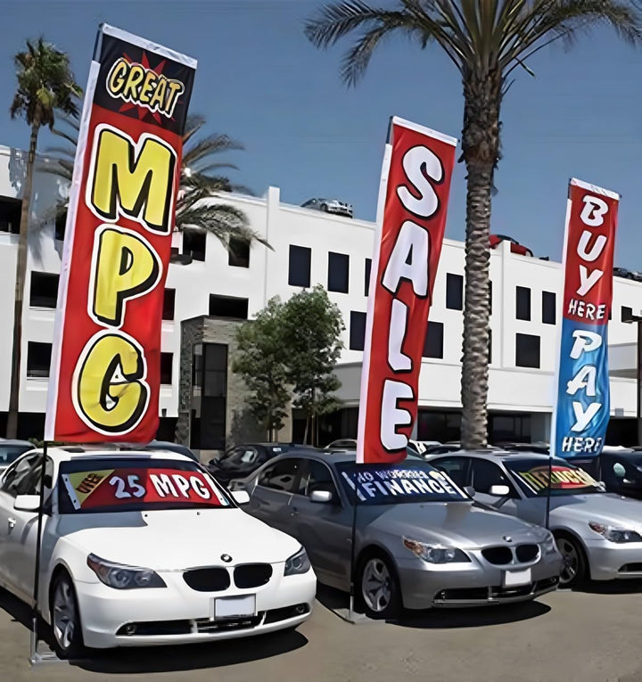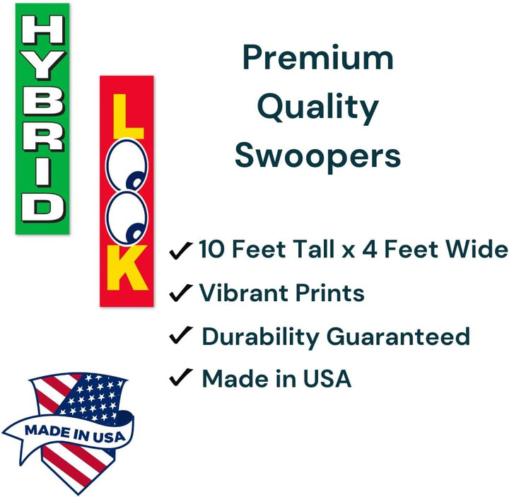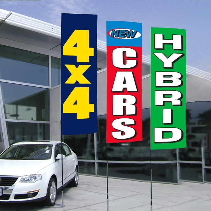 Premium Flat Top Swooper Flags - Regular Size (9' 10" × 2' 4") / Large Size (10' × 4') Advertising Banners - Single-Sided Printed Fabric Banners - Ideal for Events, Car Dealerships, and Outdoor Branding