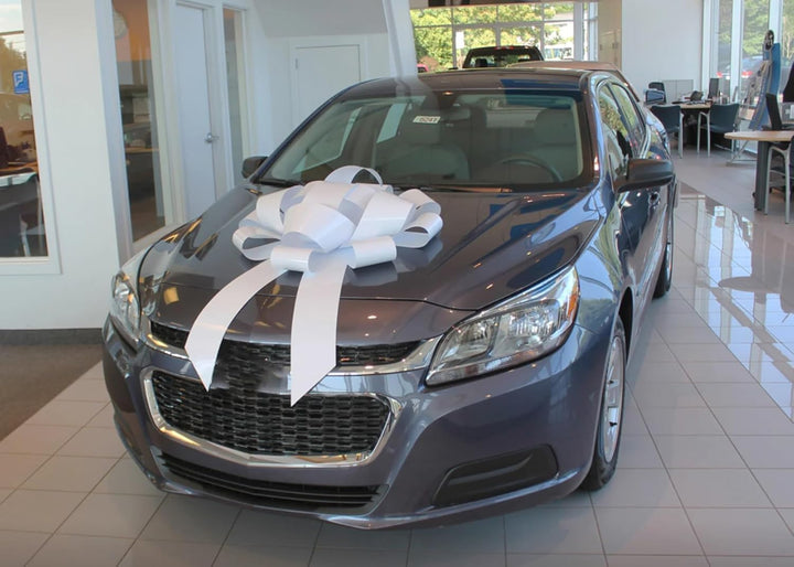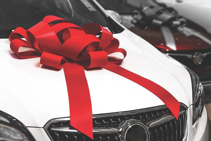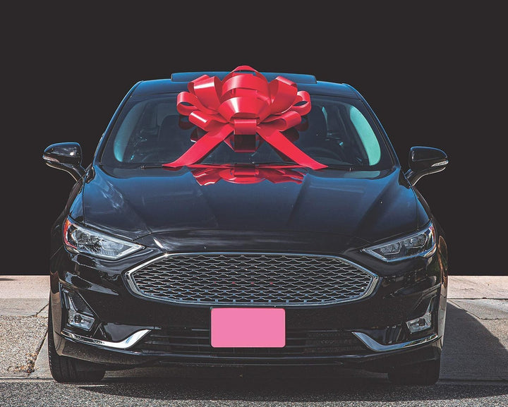 Transform your vehicle or gift presentation into a sight to behold with our Giant Car Bow. Crafted meticulously with a 30-inch width and two 30-inch long tails, this bow exudes elegance and grandeur. No assembly required, ensuring hassle-free installation. These bows boast a soft, non-scratch magnetic base, making it safe for any vehicle surface. Constructed from premium weather-resistant, waterproof vinyl, it's designed for both indoor Outdoor use. Elevate any occasion, be it birthdays, weddings, or graduations, with this versatile, eye-catching bow. Each bow is packaged individually and includes a magnet for secure attachment. Make a statement with our heavy-duty bow, the epitome of style and sophistication.