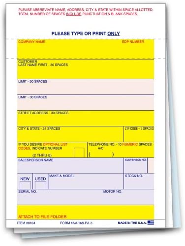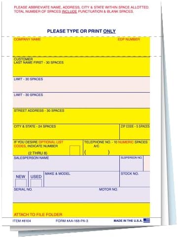 Streamline your vehicle transactions and enhance your paperwork organization with our AA-168 P/A Vehicle Deal Labels. These labels are meticulously crafted to offer efficiency and reliability in every transaction. With their vibrant yellow design, these labels ensure high visibility, making it effortless to locate and identify important documents amidst stacks of paperwork. Equipped with a permanent adhesive back, these labels guarantee a secure attachment to your paperwork, providing peace of mind that your documentation stays intact throughout the transaction process. Measuring at a generous 3-5/16" × 4-3/4", these labels offer ample space for recording vital details, including vehicle specifications, buyer/seller information, and transaction specifics, facilitating comprehensive record-keeping. Perfect for automotive dealerships, private sellers, or financial institutions, these labels serve as an indispensable tool for streamlining your documentation process while ensuring accuracy and compliance with regulatory standards.