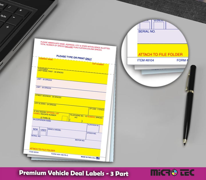 Generous Label Size for Detailed Records: At 3-5/16" × 4-3/4", these labels provide ample space to record essential vehicle details, buyer and seller info, and transaction specifics.