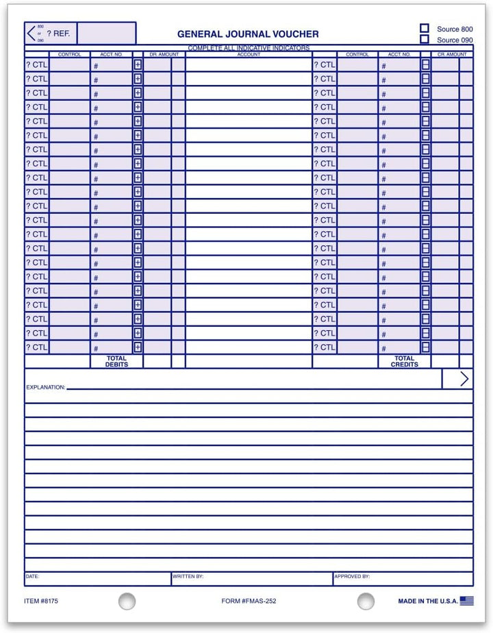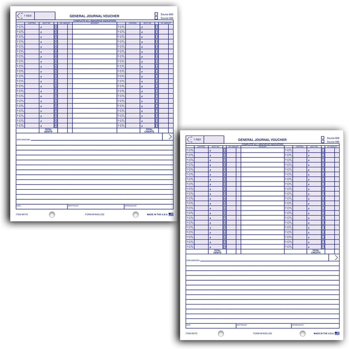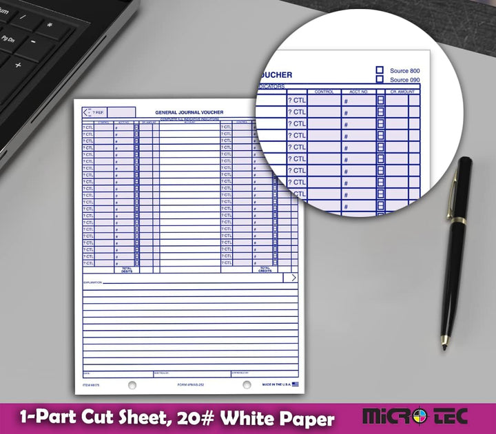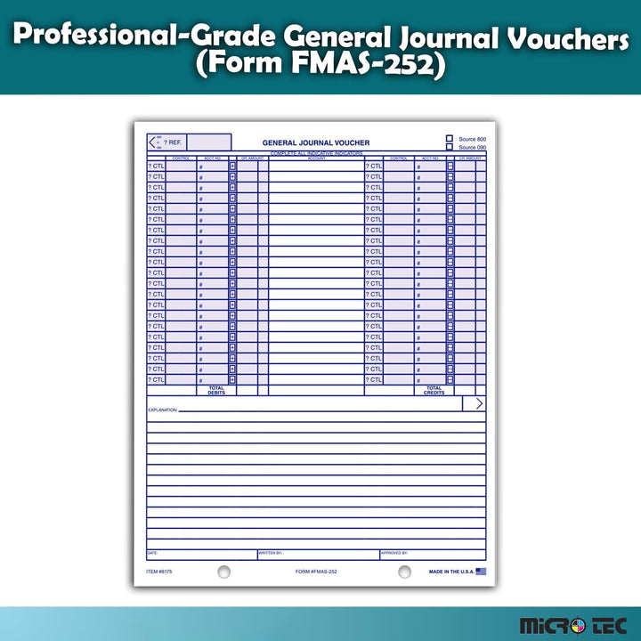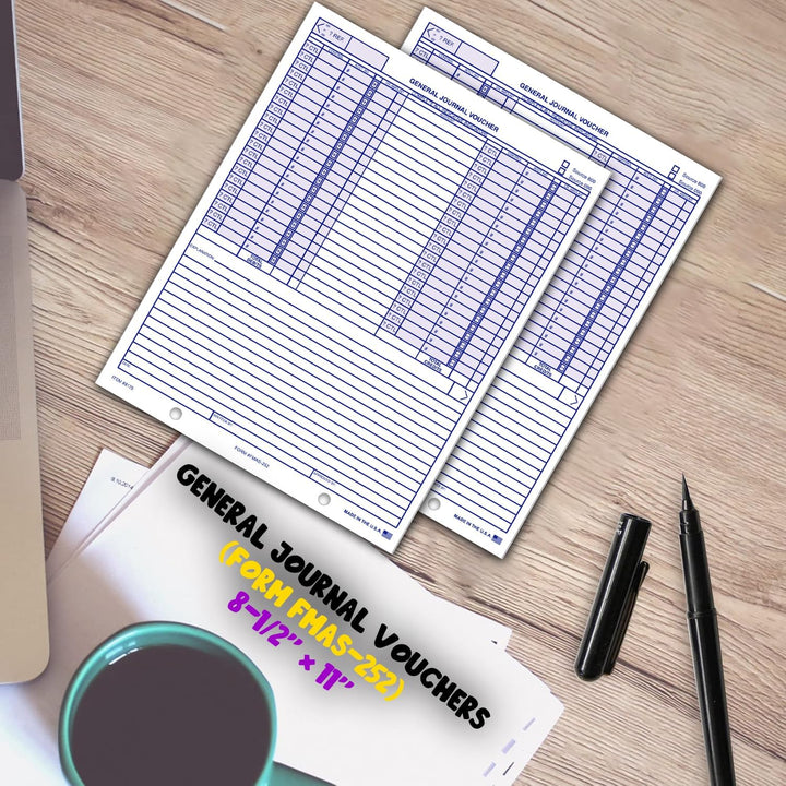 Professional-Grade General Journal Vouchers (Form FMAS-252) - Compatible with Ford Accounting System - 8.5" × 11" 1-Part Cut Sheet, 20# White Paper - Financial & Accounting Forms
