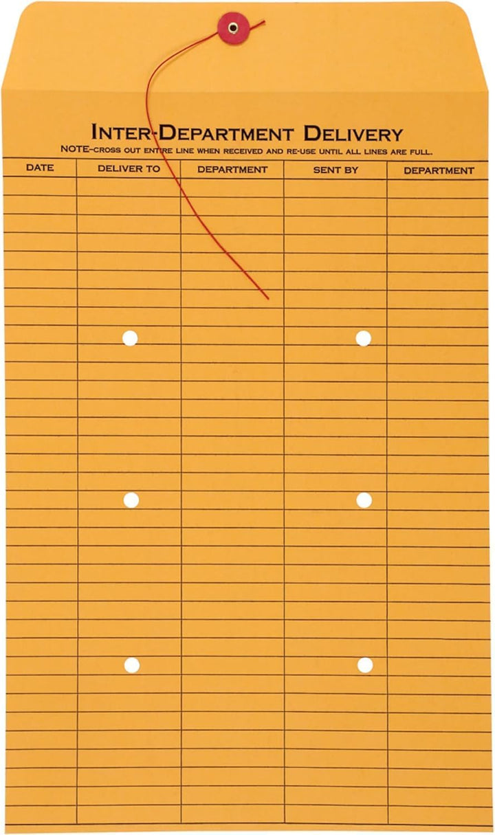 Professional Grade String & Button Interoffice Envelope - 10" x 13" Heavy-Duty Mail Envelope with 5-Column Format - Reinforced Kraft Paper for Secure Document Transfer and Multiple Reuses